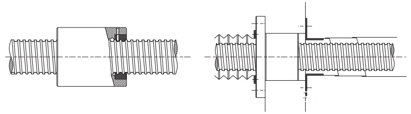 滾珠螺桿與滾動(dòng)軸承一樣,當(dāng)有異物混入或水分等情況時(shí)磨損會(huì)增加,有時(shí)會(huì)導(dǎo)致?lián)p壞。例如工作機(jī)械由于作業(yè)環(huán)境的關(guān)係,可能會(huì)混入切屑或切削油。因此當(dāng)有異物從外部混入的可能時(shí),應(yīng)如圖 所示,以折布 ( 蛇腹型 ) 或套筒伸縮管等,完全罩住螺桿軸。